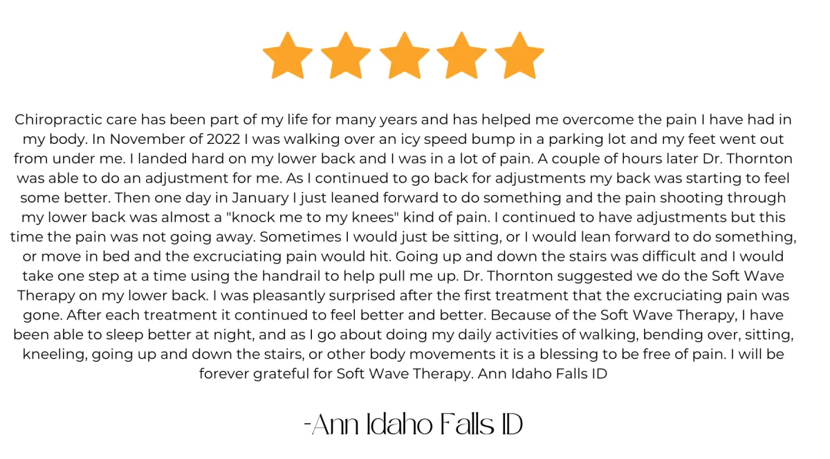 Disclaimer: Procedures and treatments performed by XXX - Thornton Family Chiropractic have an inherent success (and failure) rate. Reviews, testimonials and content on this site should not be interpreted as a statement of efficacy of procedures and treatments performed by XXX - Thornton Family Chiropractic for anyone else.